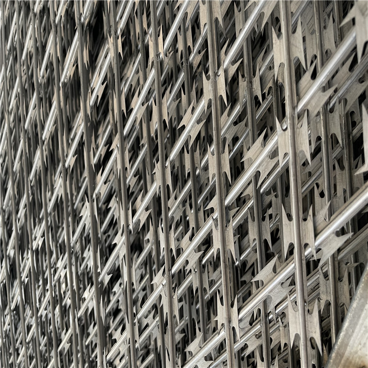附加组件:在焊接网的上部或两侧,通过专用支架或直接焊接固定刀片刺绳(刀片刺网)。